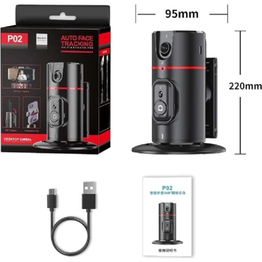 مثبت كاميرا ذكي P02 بزاوية 360 درجة | تتبع الوجه بالذكاء الاصطناعي، تحكم عن بُعد، كاميرا، حامل ثلاثي القوائم لسطح المكتب، دوران تلقائي - G4O