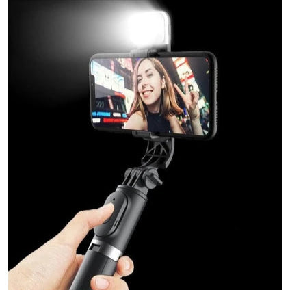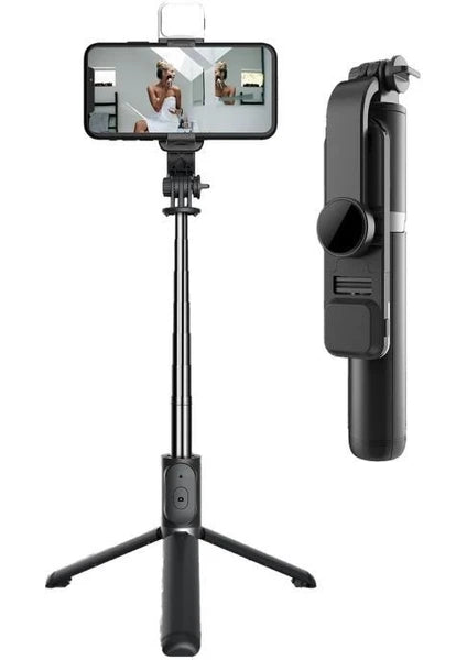 حامل ثلاثي القوائم Q02s لعصا السيلفي مع إضاءة | جهاز تحكم عن بُعد بتقنية البلوتوث، قابل للطي والتمديد، مع حامل هاتف يدور 360 درجة - G4N