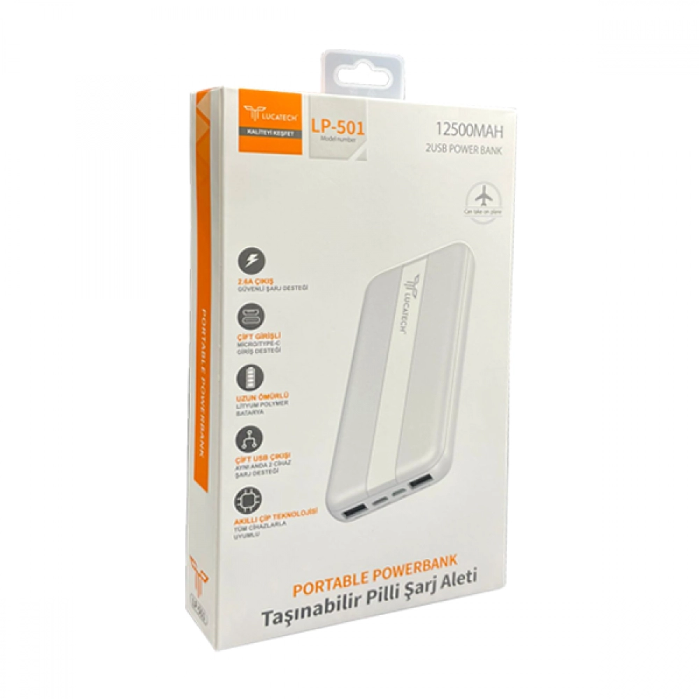 12500mah dual USB and typec micro input portable led level light power bank LP-501