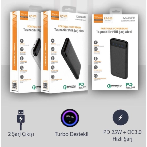 12500 mAh fast charging supported dual USB and type C micro input portable LED indicator power bank LP-503