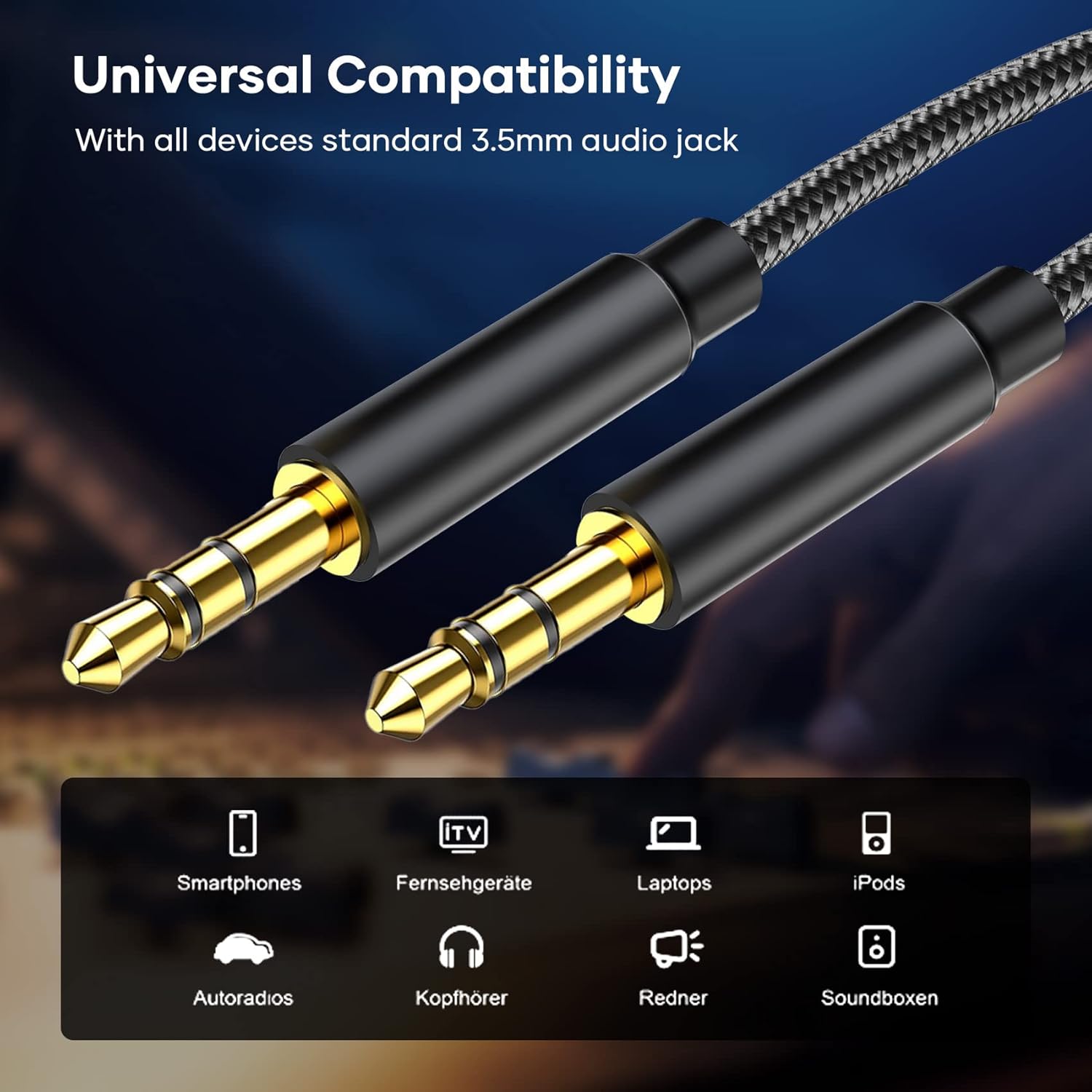 Universal Compatibility: The Aux cable is designed for universal compatibility with almost all audio devices. It works with smartphones, tablets, MP3 players, computers, car audio systems, and more. This allows you to easily share your music across different platforms.
