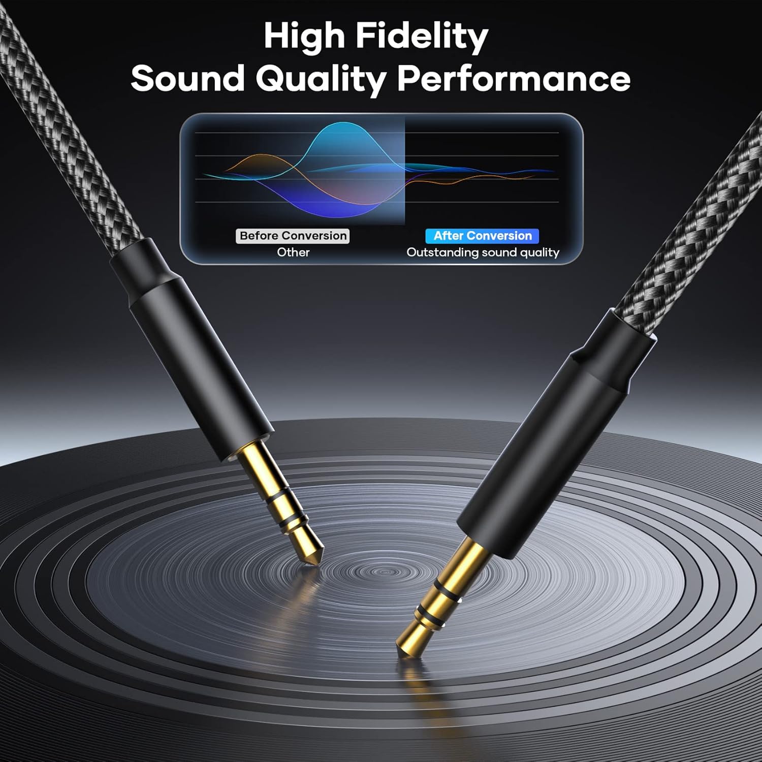 High Sound Quality: The Aux cable delivers high sound quality by transmitting your music seamlessly from the original source. You can enjoy your music without noise or signal loss, experiencing rich and clear sound.