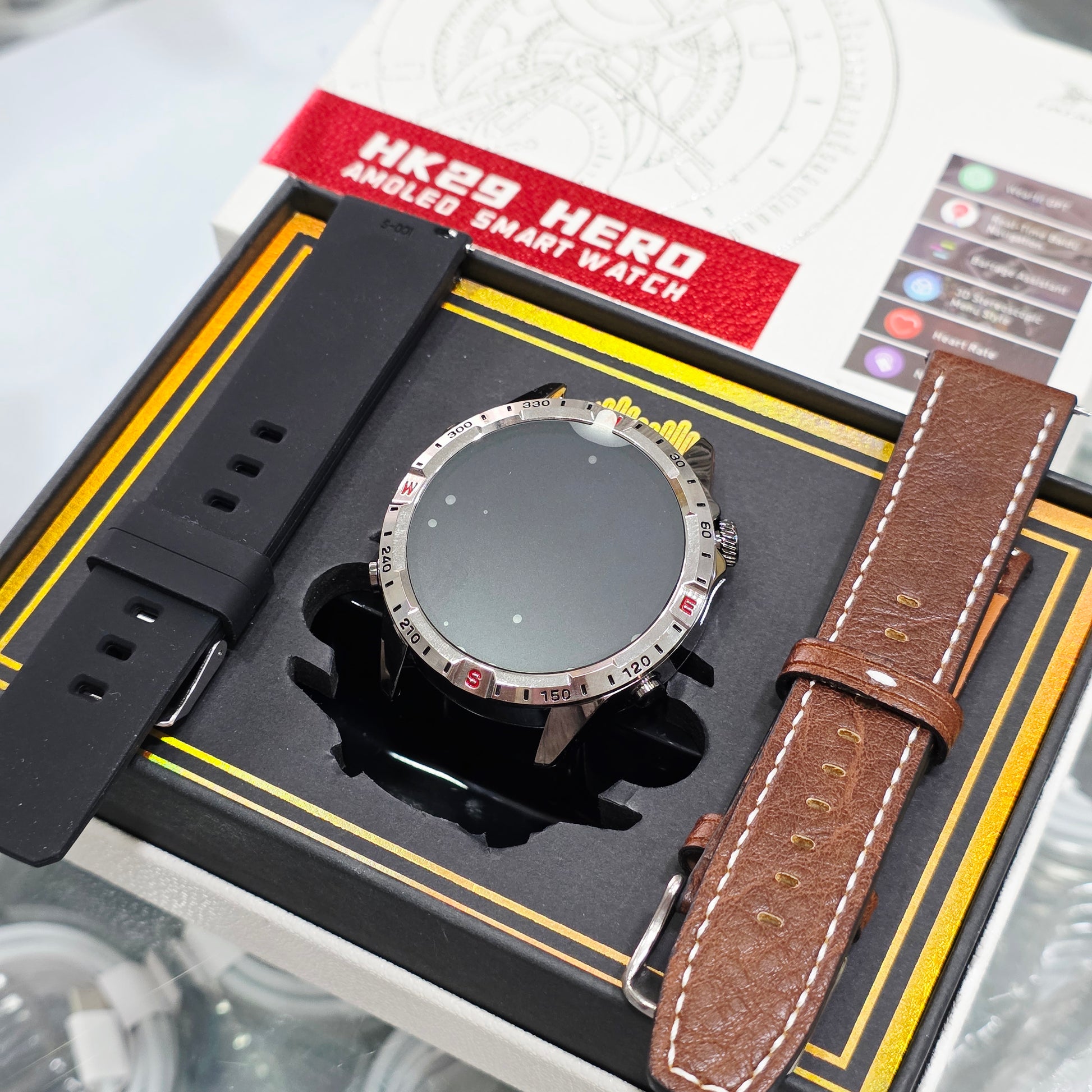 HK29 Hero Amoled Ekran Yuvarlak Akıllı Saat Navigasyon Bluetooth Çağrı Android Ios Uyumlu Saat