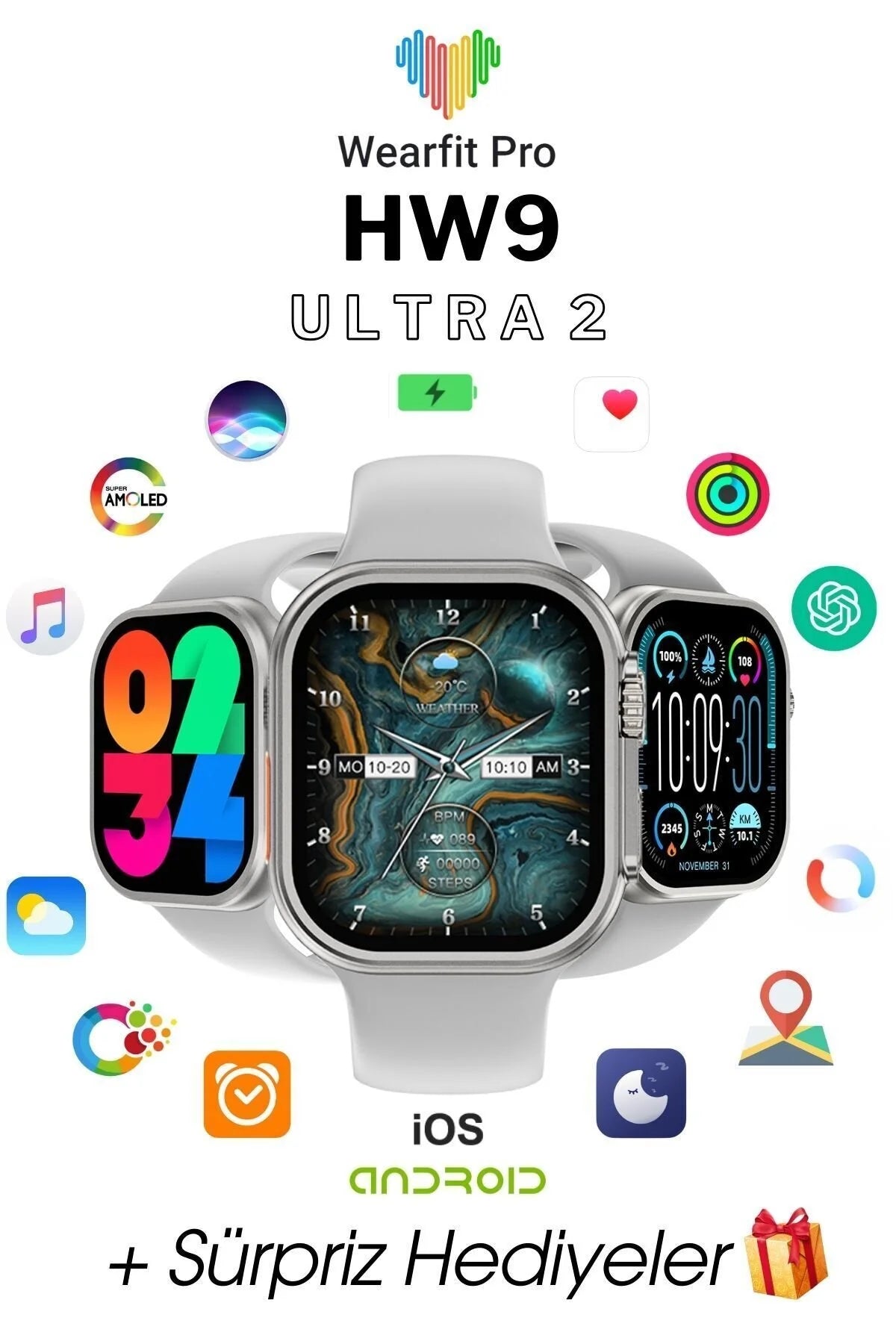 Hw9 ultra2 49mm amoled ekranlı 3 kordonlu ios android uyumlu akıllı saat