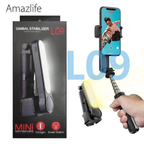 L09 mini gimbal tripod | with light, stabilizer, remote control, adjustable feet, portable phone holder