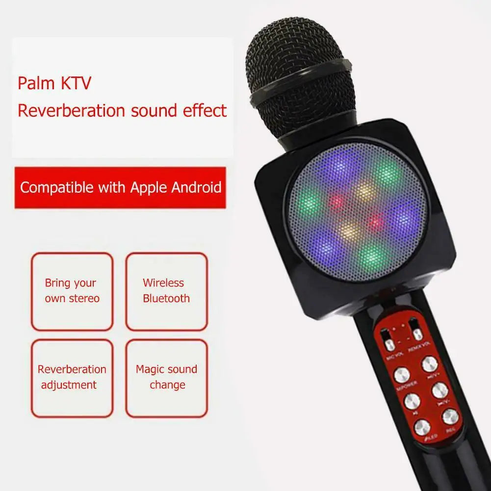 WS-1816 illuminated karaoke microphone Bluetooth AUX USB memory support