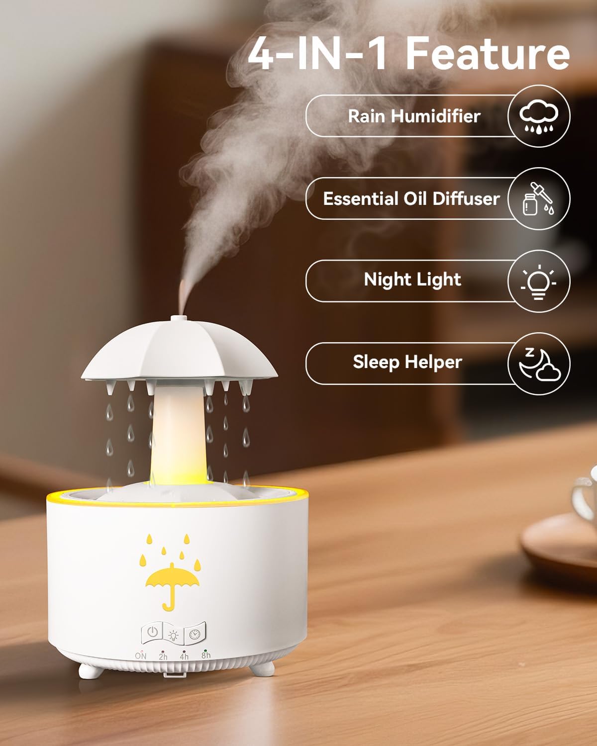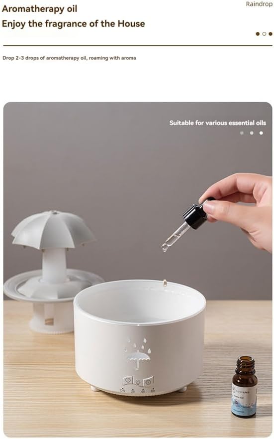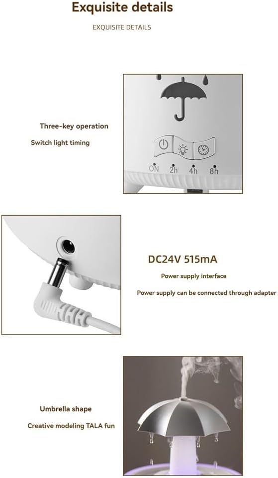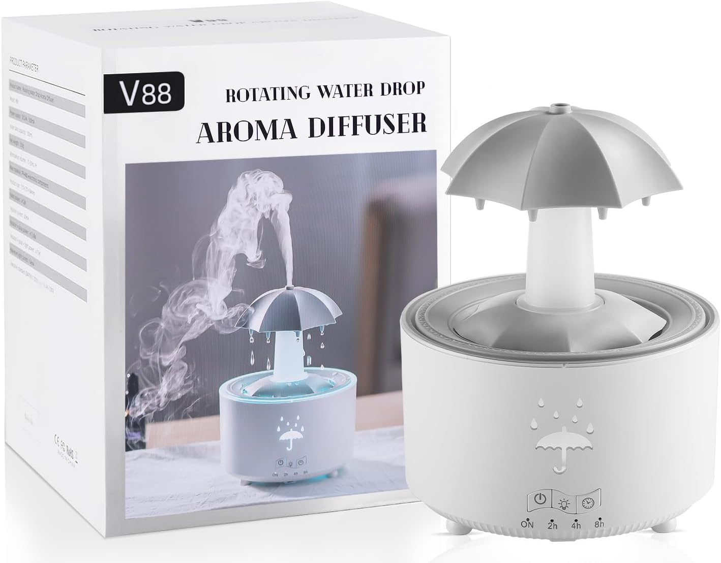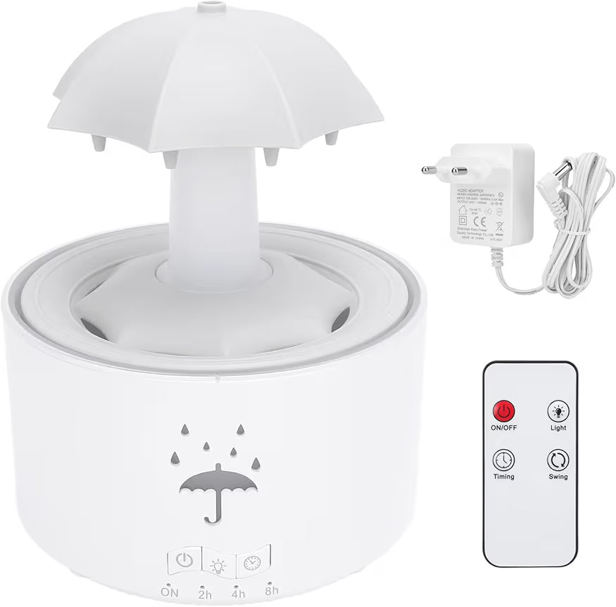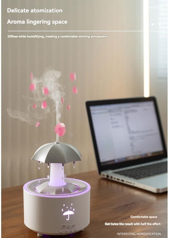 V88 3'ü 1 arada Yağmur Damlası Nemlendirici ve Esansiyel Yağ Difüzörü, Serin Sis, 360 Derece Şelale, Fısıltılı Yağmur Sesi ve 7 Ruh Hali Işığı, Şemsiye Tasarımlı Hava Nemlendirici, Ev, Yatak Odası, Oturma Odası - H3Y