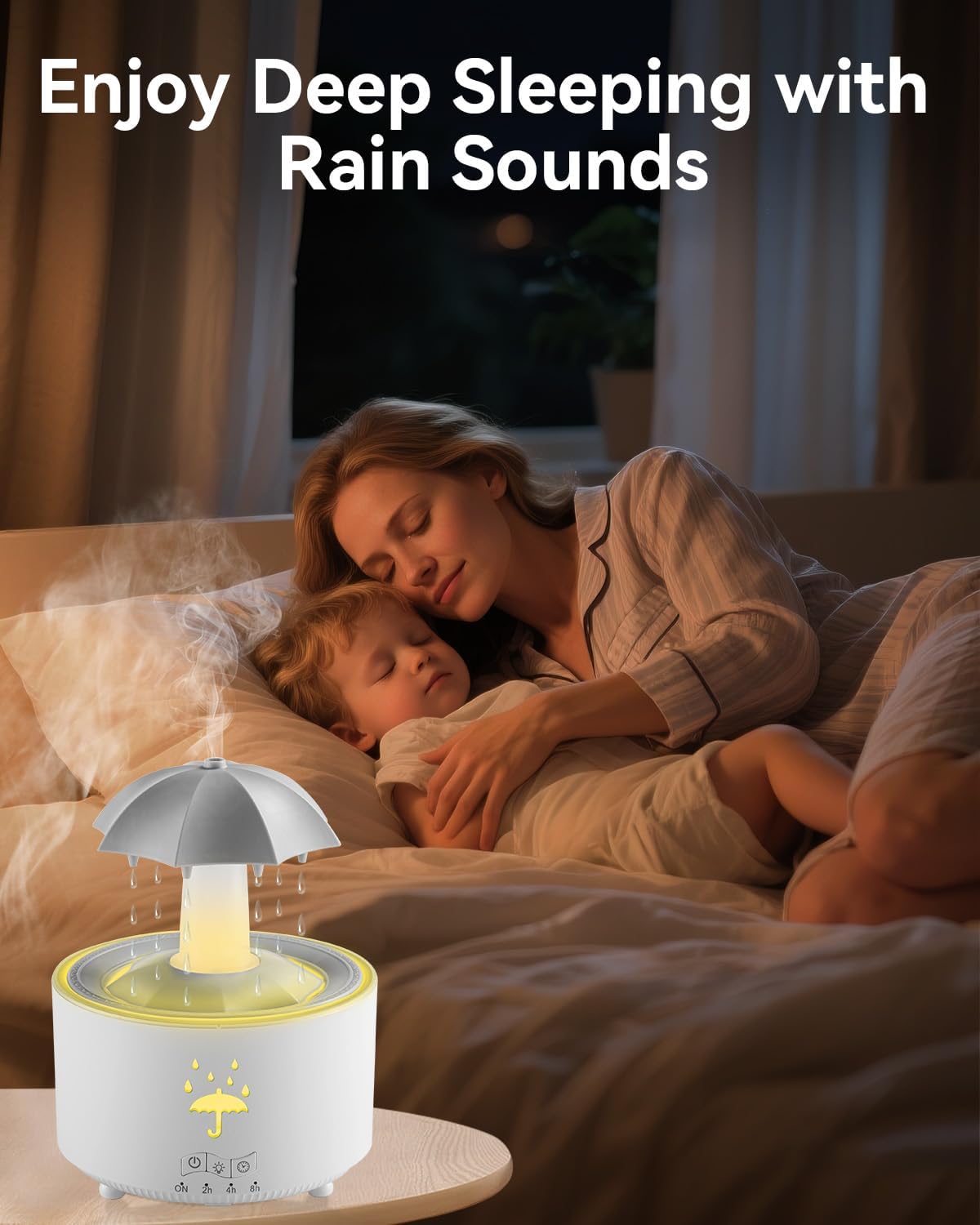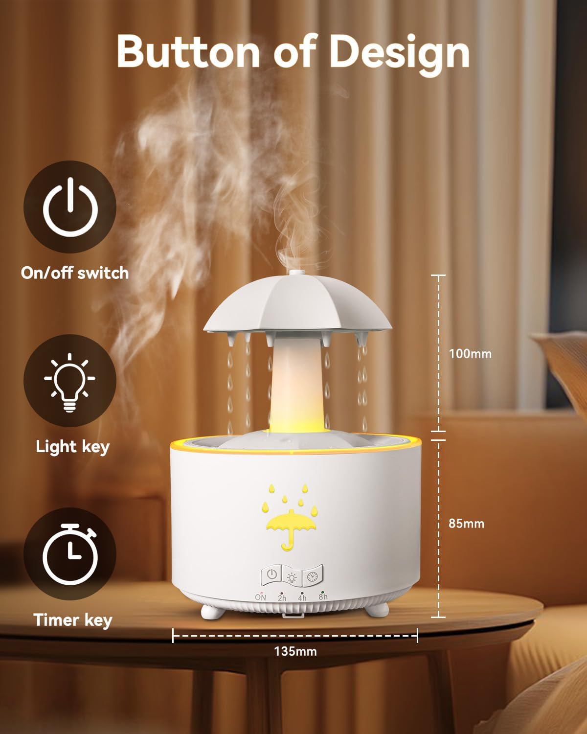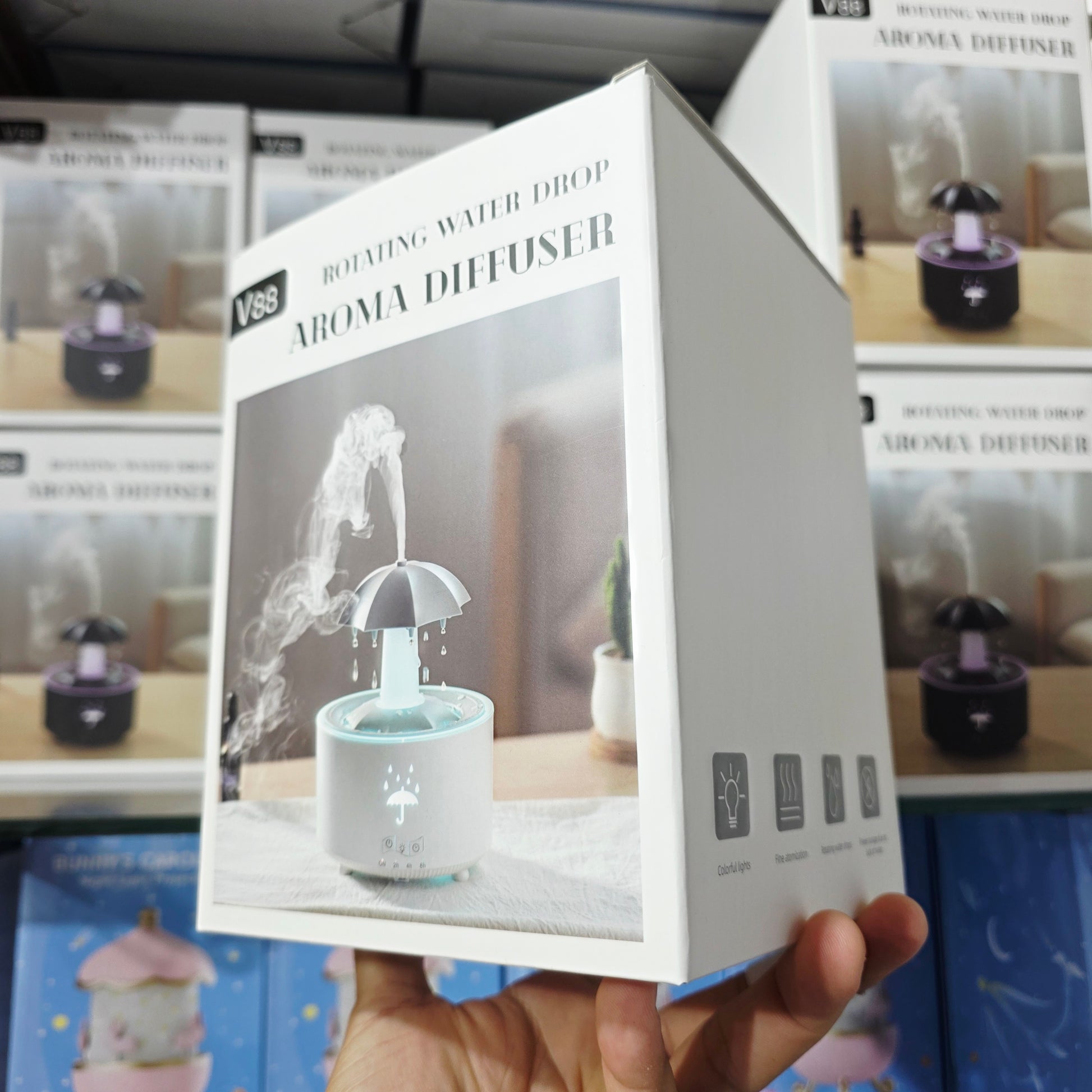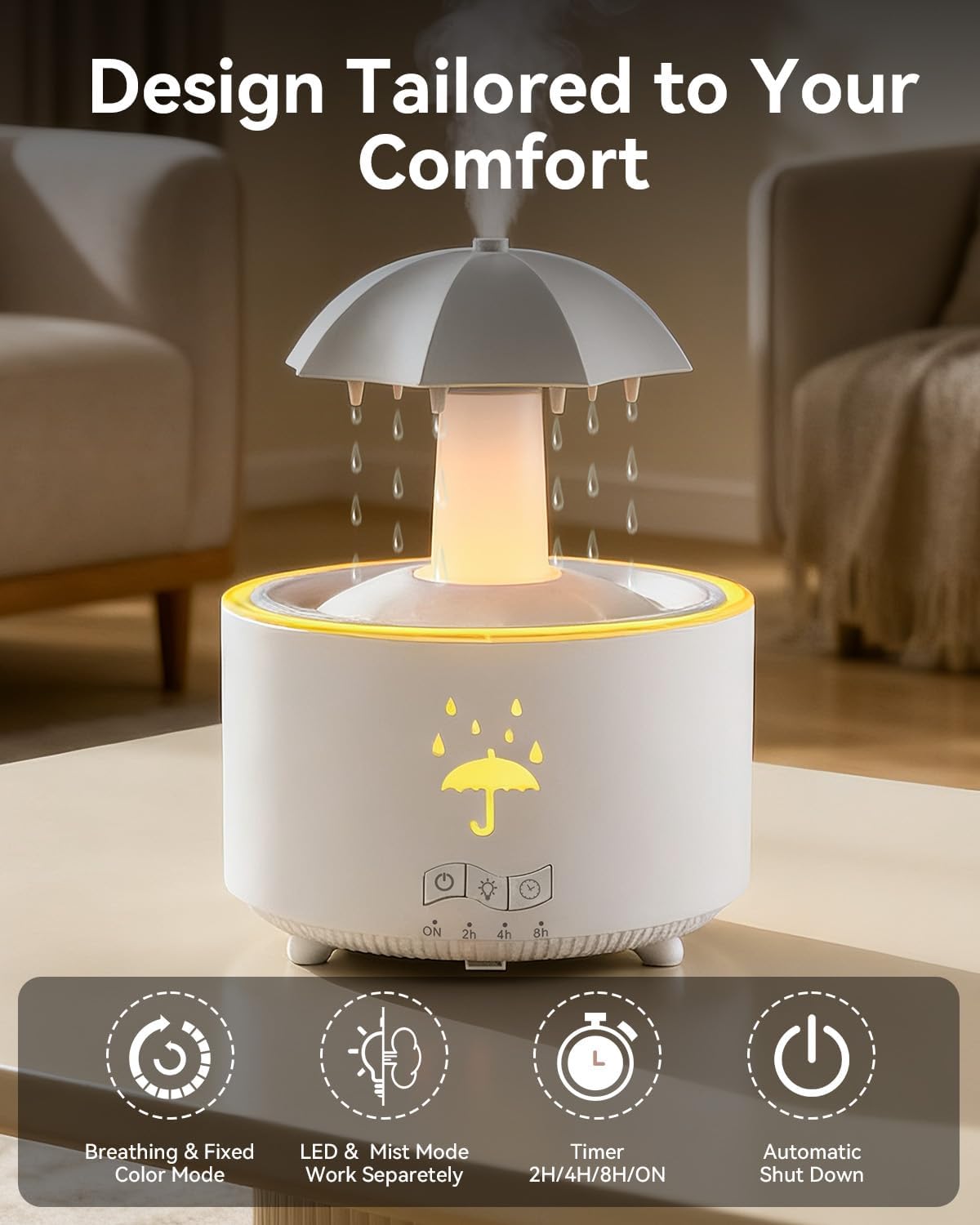 V88 3'ü 1 arada Yağmur Damlası Nemlendirici ve Esansiyel Yağ Difüzörü, Serin Sis, 360 Derece Şelale, Fısıltılı Yağmur Sesi ve 7 Ruh Hali Işığı, Şemsiye Tasarımlı Hava Nemlendirici, Ev, Yatak Odası, Oturma Odası - H3Y