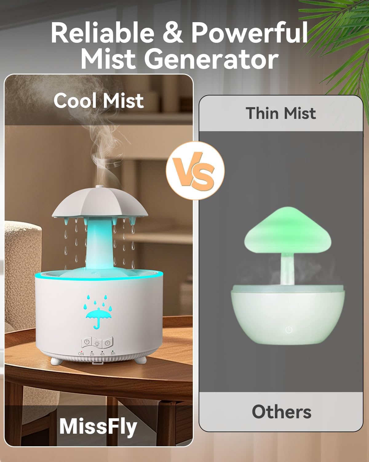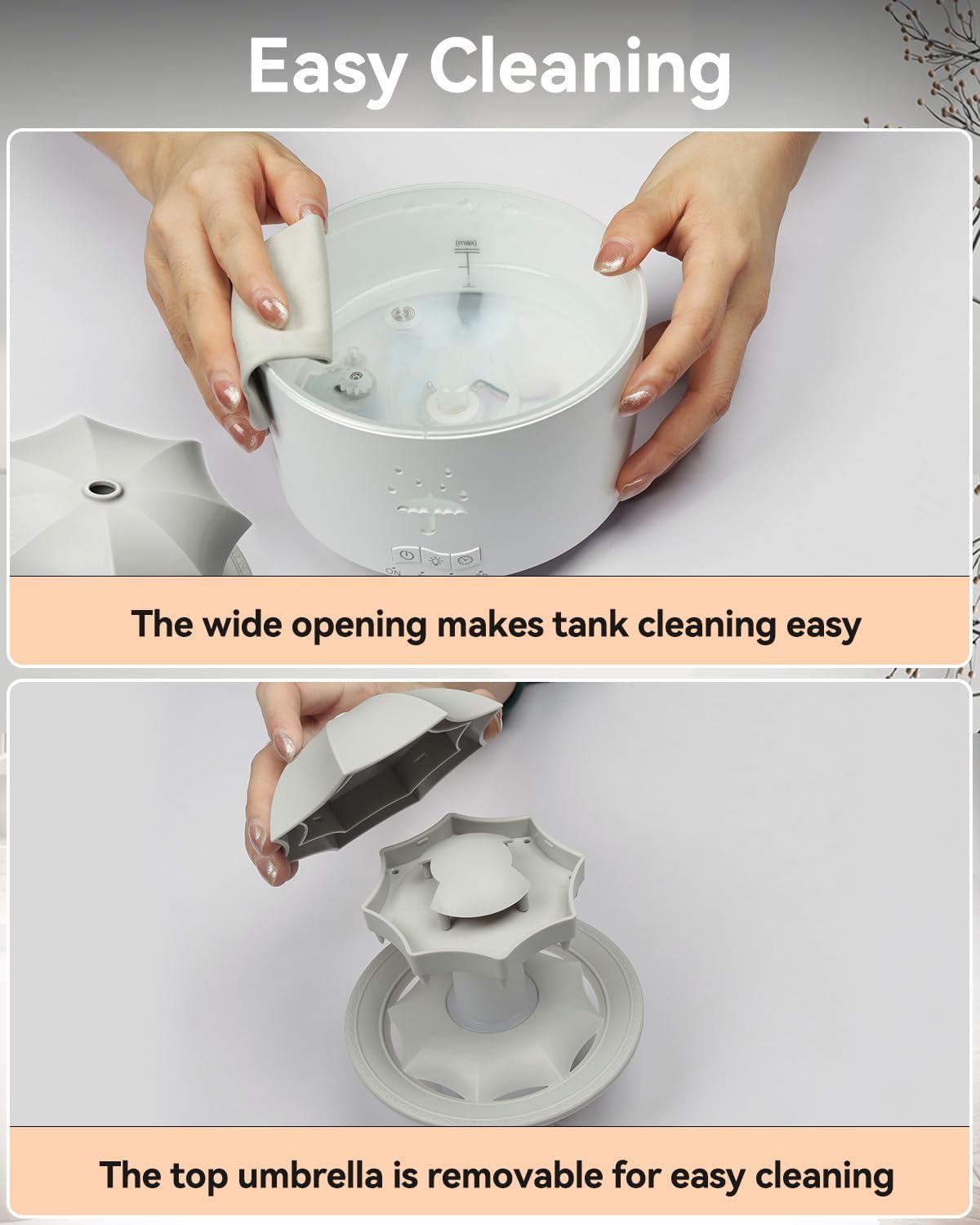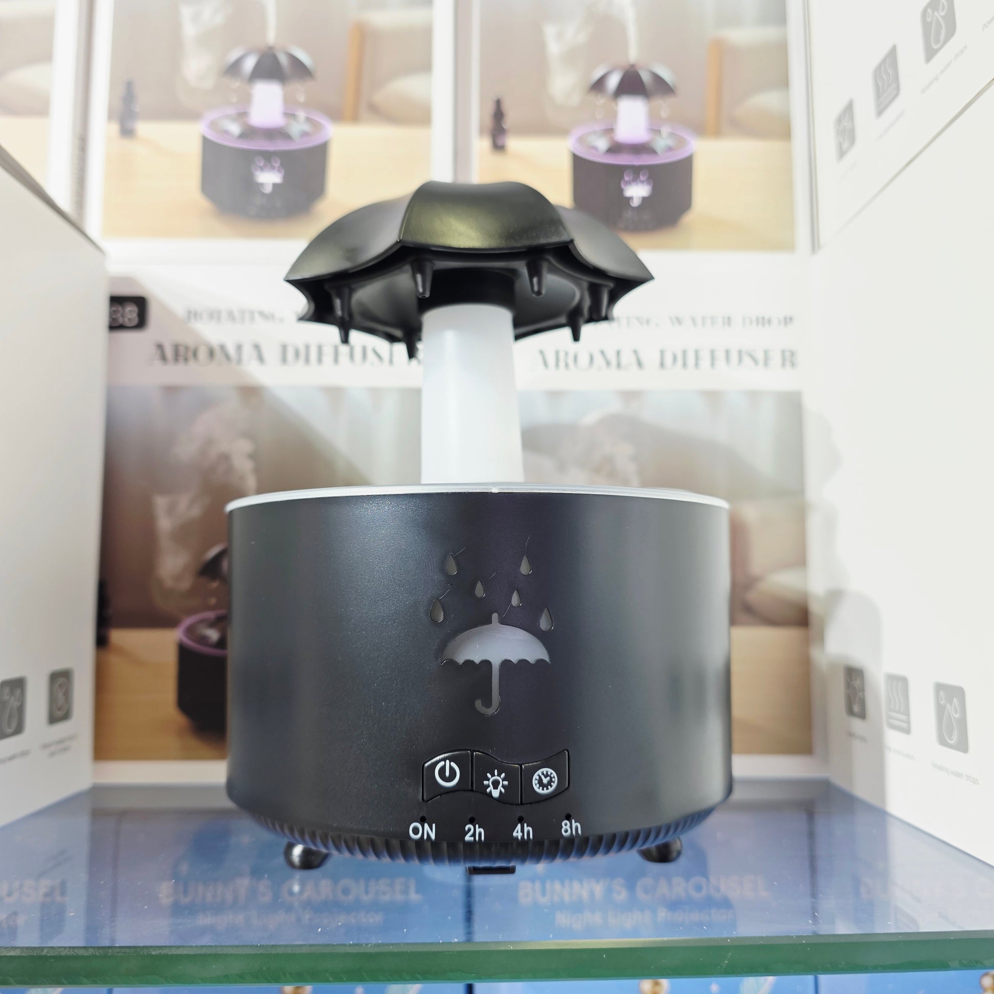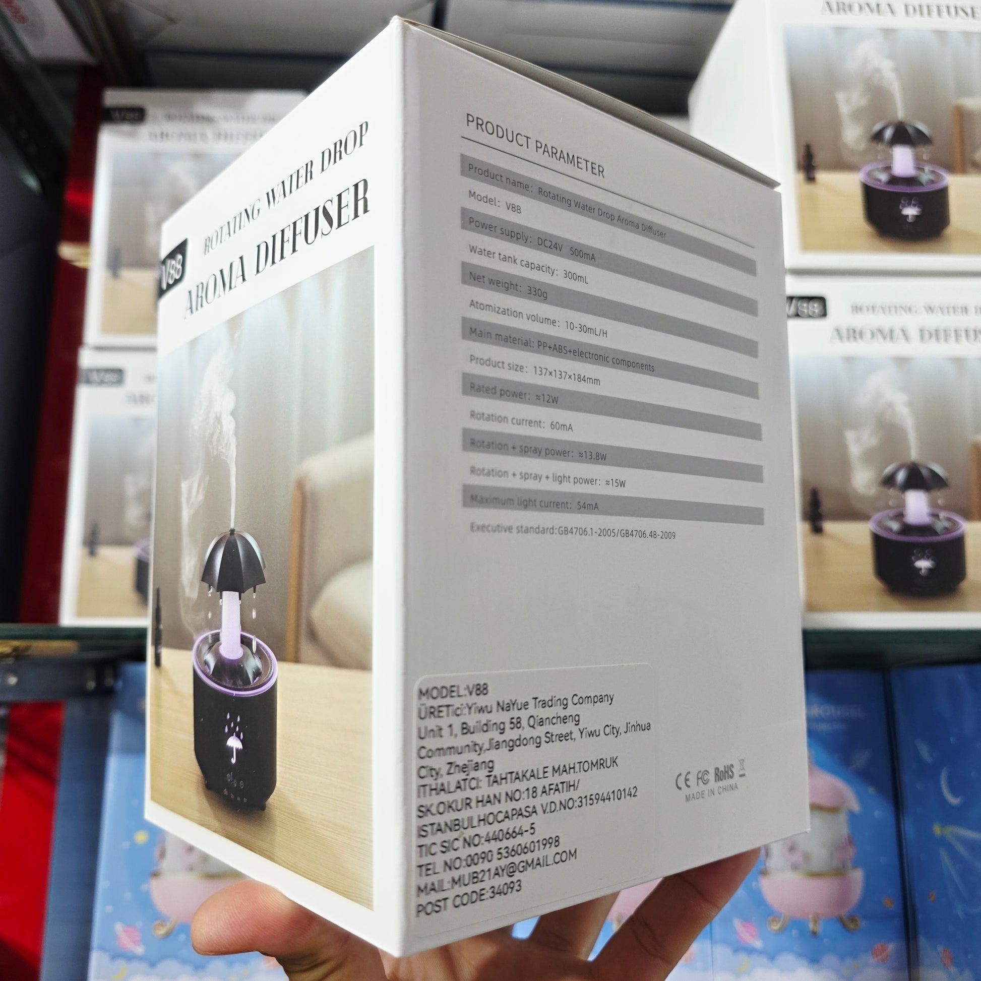 V88 3'ü 1 arada Yağmur Damlası Nemlendirici ve Esansiyel Yağ Difüzörü, Serin Sis, 360 Derece Şelale, Fısıltılı Yağmur Sesi ve 7 Ruh Hali Işığı, Şemsiye Tasarımlı Hava Nemlendirici, Ev, Yatak Odası, Oturma Odası - H3Y