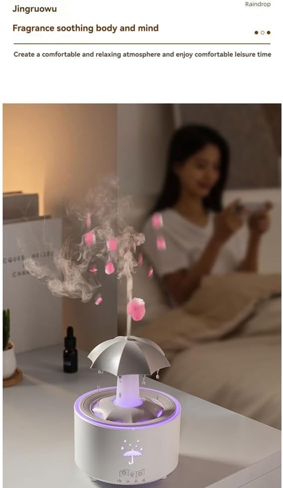V88 3'ü 1 arada Yağmur Damlası Nemlendirici ve Esansiyel Yağ Difüzörü, Serin Sis, 360 Derece Şelale, Fısıltılı Yağmur Sesi ve 7 Ruh Hali Işığı, Şemsiye Tasarımlı Hava Nemlendirici, Ev, Yatak Odası, Oturma Odası
